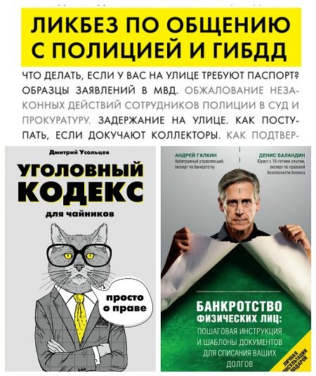 Описание Как гражданину общаться с представителями правоохранительных органов и чем это может закончиться? Книги содержат базовые знания по общению, а также формы заявления о банкротстве, приложения должника и кредитора, рекомендации по выбору юридической фирмы и выкупу долга.