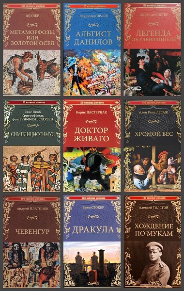 100 великих романов - серия (15 книг) самых знаменитых романов.