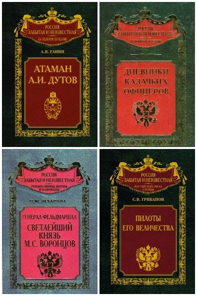 Серия (80 книг) - «Россия забытая и неизвестная» состоит на сто процентов из исторических книг, которые время от времени, в зависимости от политического строя, изымались из библиотек, "терялись", "забывались" и опять появлялись на свет.