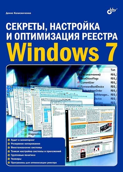 Описание: Рассмотрено устройство, настройка и оптимизация реестра, секреты и трюки при работе с ним, параметры популярных Windows-приложений. Описаны программы для мониторинга, чистки и быстрой настройки реестра, которые пригодятся каждому пользователю. Для администраторов систем даны приемы управления реестром (политики, списки доступа), использования Windows Installer, тонкая настройка системы и приложений, примеры действий в различных нештатных ситуациях. Некоторые настройки реестра, приведенные в этой книге, будут работать не только в Windows 7, но и в Windows Vista и Windows ХР.