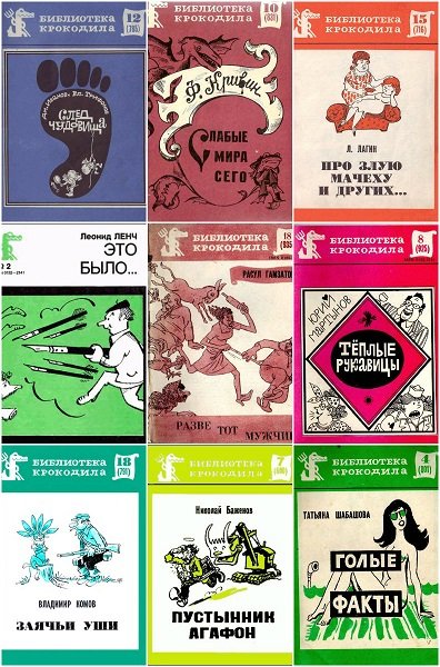 Библиотека Крокодила - серия юмористических и сатирических брошюр, библиотека знаменитого журнала "Крокодил". Вышло более 1000 выпусков. Брошюрки маленькие, но смешные и с веселыми рисунками, карикатурами и шаржами.